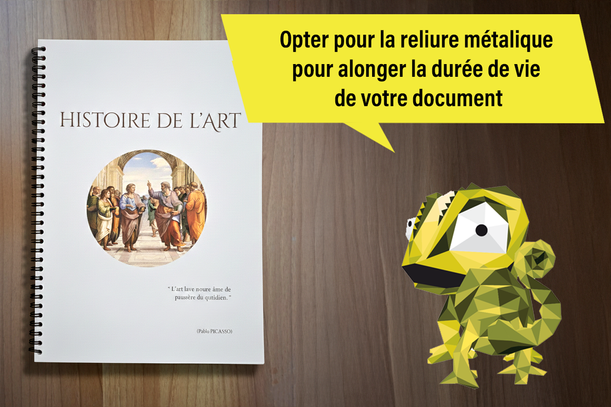 La reliure métallique offre une meilleure résistance et un rendu plus haut de gamme que les spirales en plastique. Elle permet également une ouverture à plat complète, très pratique pour la lecture et la photocopie.