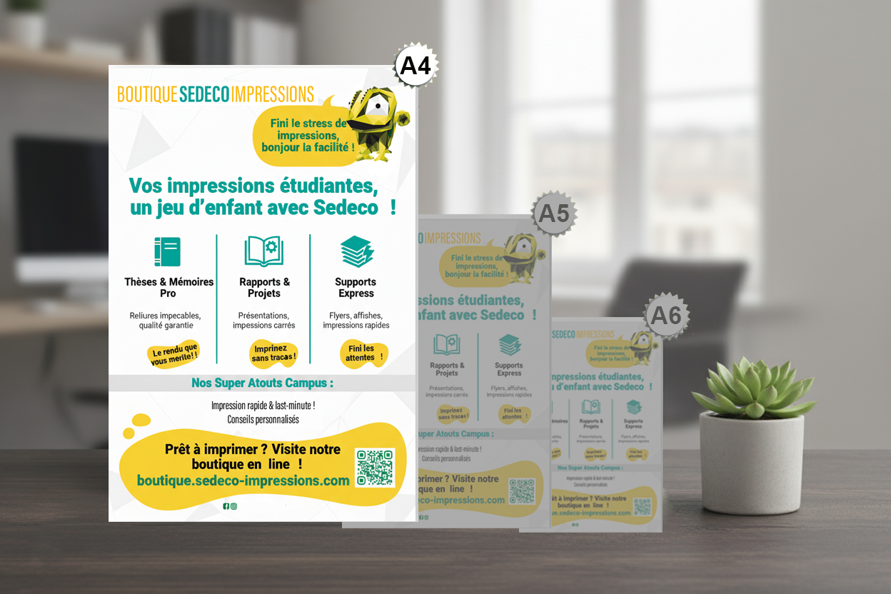 Le flyer A4 est généralement imprimé sur un papier plus léger, facile à distribuer ou à plier, tandis qu’une affiche est pensée pour l’affichage fixe.