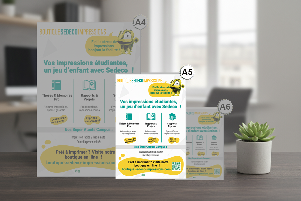 Chez SEDECO IMPRESSIONS, nous imprimons vos flyers A5 en haute définition, sur le papier et la finition de votre choix, pour un résultat clair, attractif et professionnel.